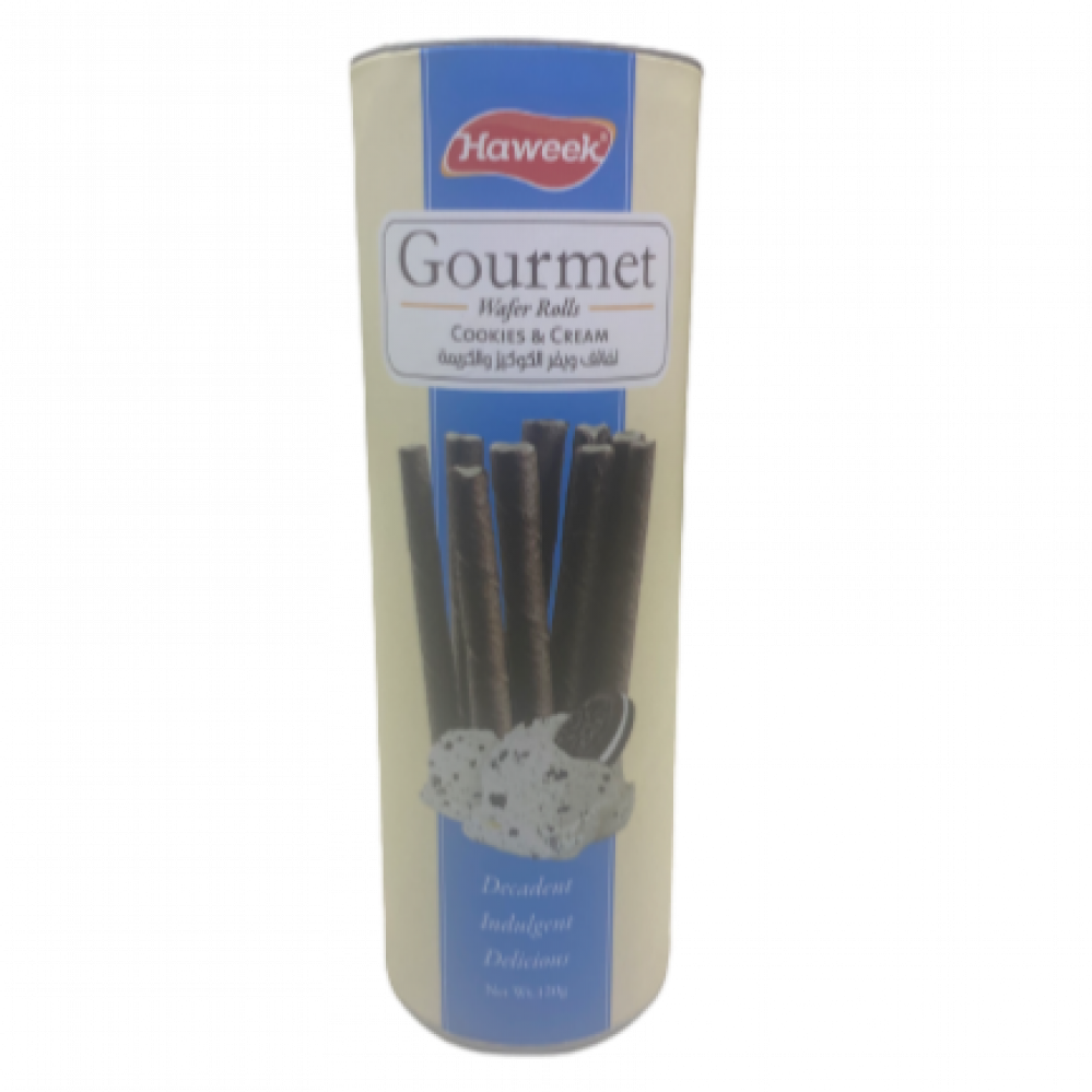 Cookies and cream wafer rolls containing 70 grams